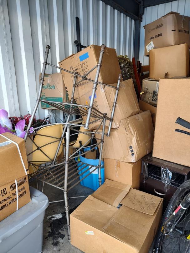 This unit appears to contain…This unit appears to contain dresser, chairs, plastic containers, boxes, misc. items, flowers, bed rails and mannequin