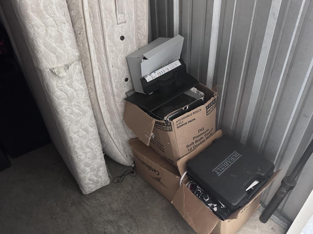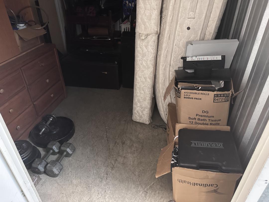 This unit appears to contain…Tool Box,TV,Mattresses,Box Springs,Dressers or Armoire,Decor,TV Stand,Misc. Boxes,Misc. Items,Exercising Equip.,Laundry Baskets,Cleaning Supplies