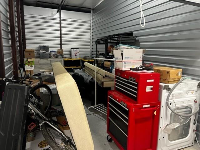 This unit appears to contain…Tool Box,Bikes,Washing Machine,Dryer,Office Desks,Swivel Chairs,Bed Frame,Dressers or Armoire,Plastic Containers,Misc. Boxes,Misc. Items,Exercising Equip.,Suitcases