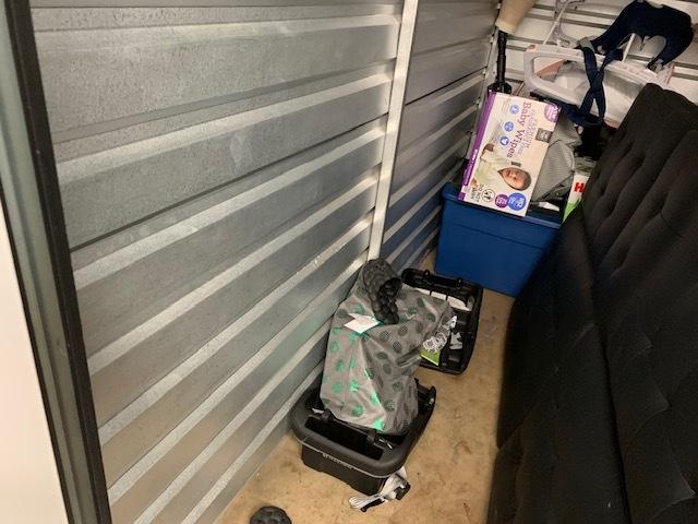 This unit appears to contain…climate control futon, 2 end tables, baby carrier , tote ,mannequin, baby rocker, bags