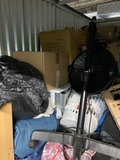 This unit appears to contain…Fan, totes, dolly, salon dryer, boxes, dresser, bags