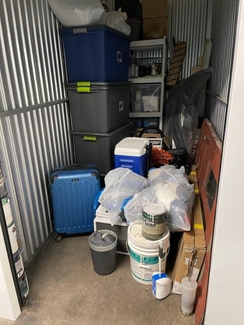 This unit appears to contain…Totes, door, boxes, shelf, suitcase