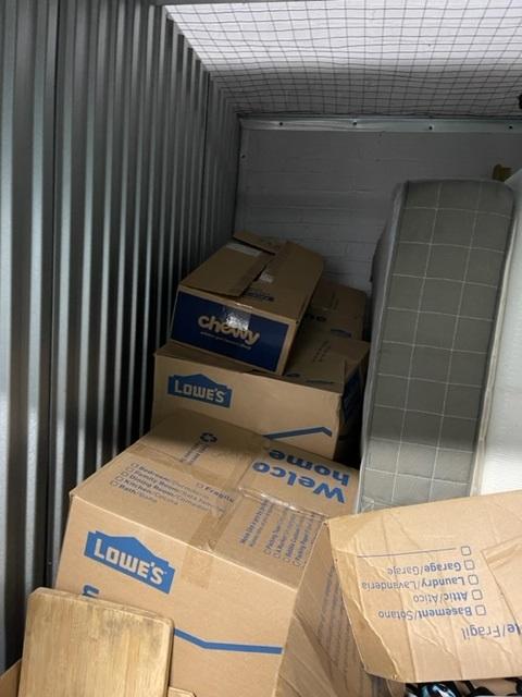 This unit appears to contain…Boxes, Step Ladder, Computer Chairs, Lamp, Table,