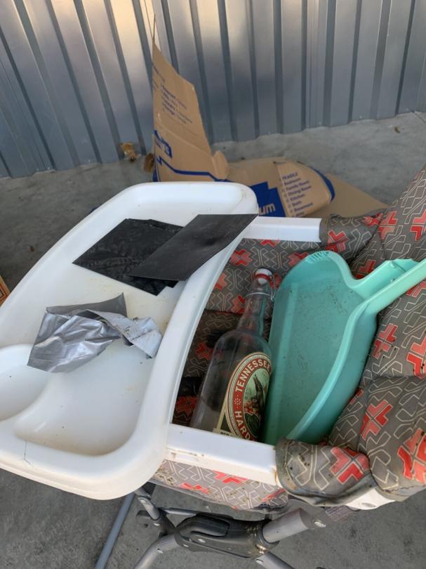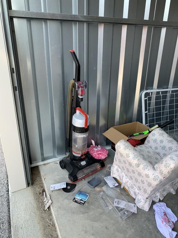 This unit appears to contain…vacuum cleaner,kid chair,high chair,tote and baby bed spring