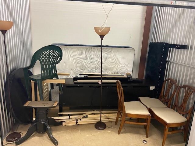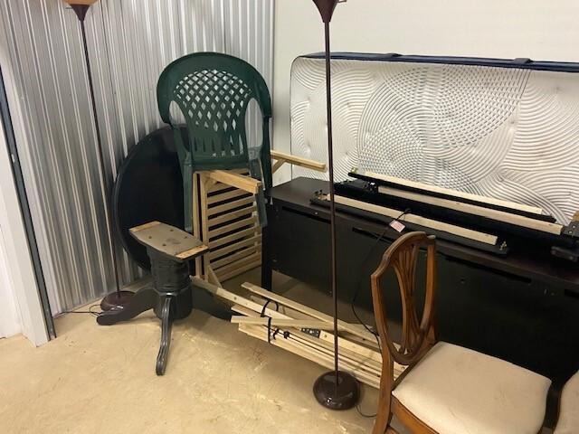 This unit appears to contain…Chairs, Lamp, Table, Misc. Items.