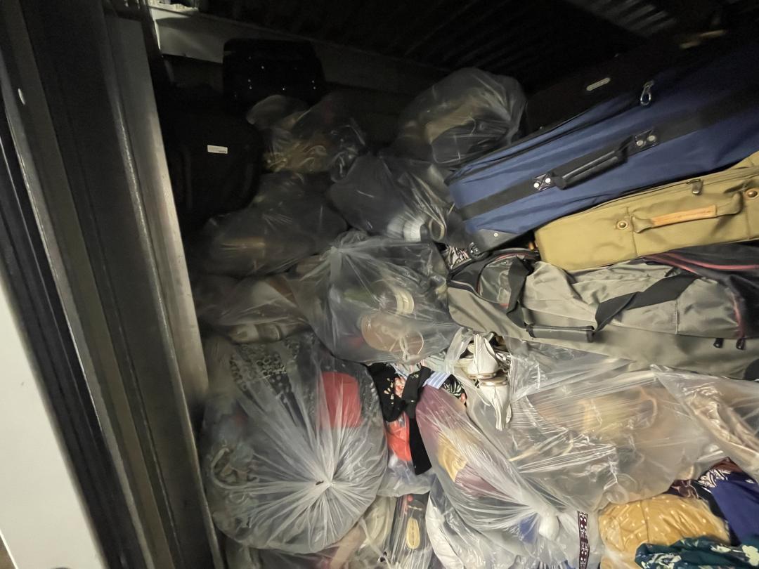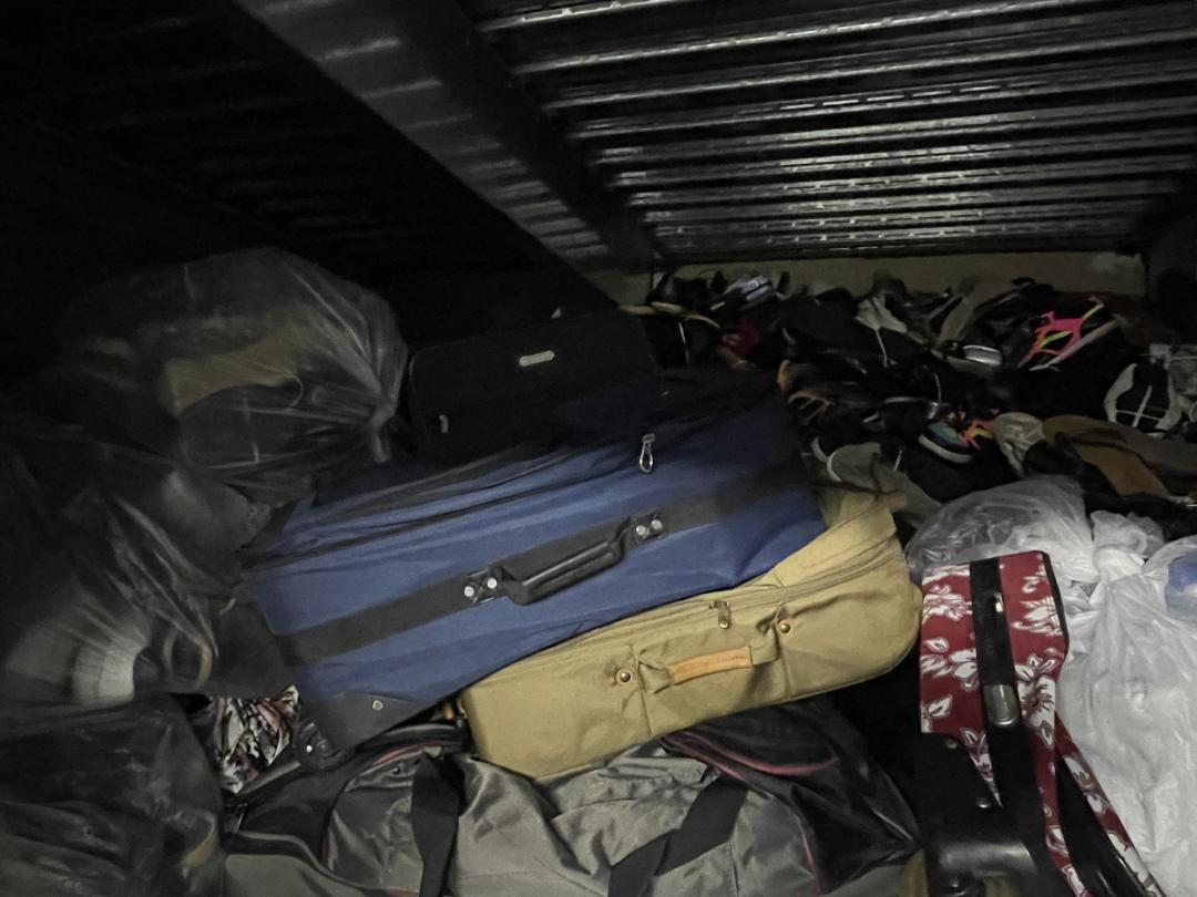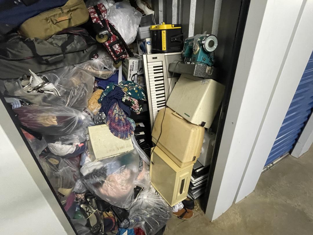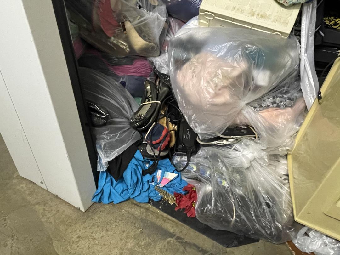 This unit appears to contain…This unit consists of clothes, shoes, keyboards, laptops, and sewing machines.