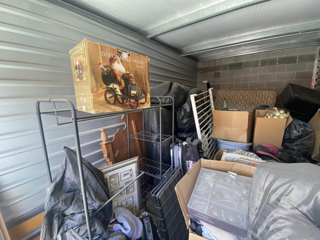 This unit appears to contain…Refrigerator, Subwoofer, Christmas Decorations, Couches, Work Out Equipment, Easy Up, Tail gate tent, Standing Shelves, Hedge Trimmer, Fishing tackle box
