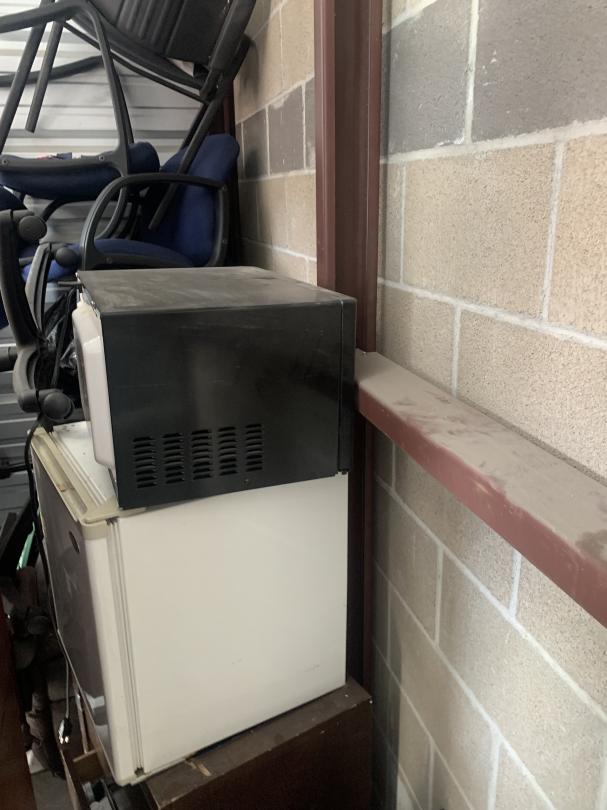 This unit appears to contain…Office Desks, Office Chairs, Microwave, Panini Press, Mini Fridge,