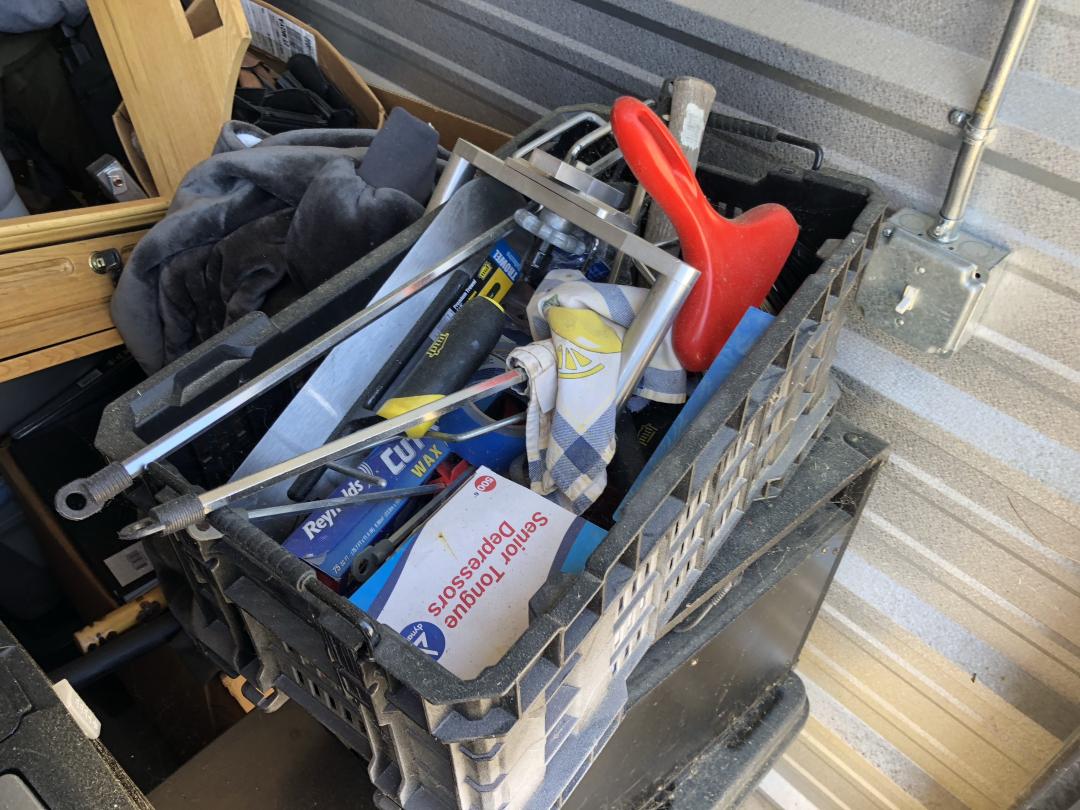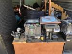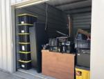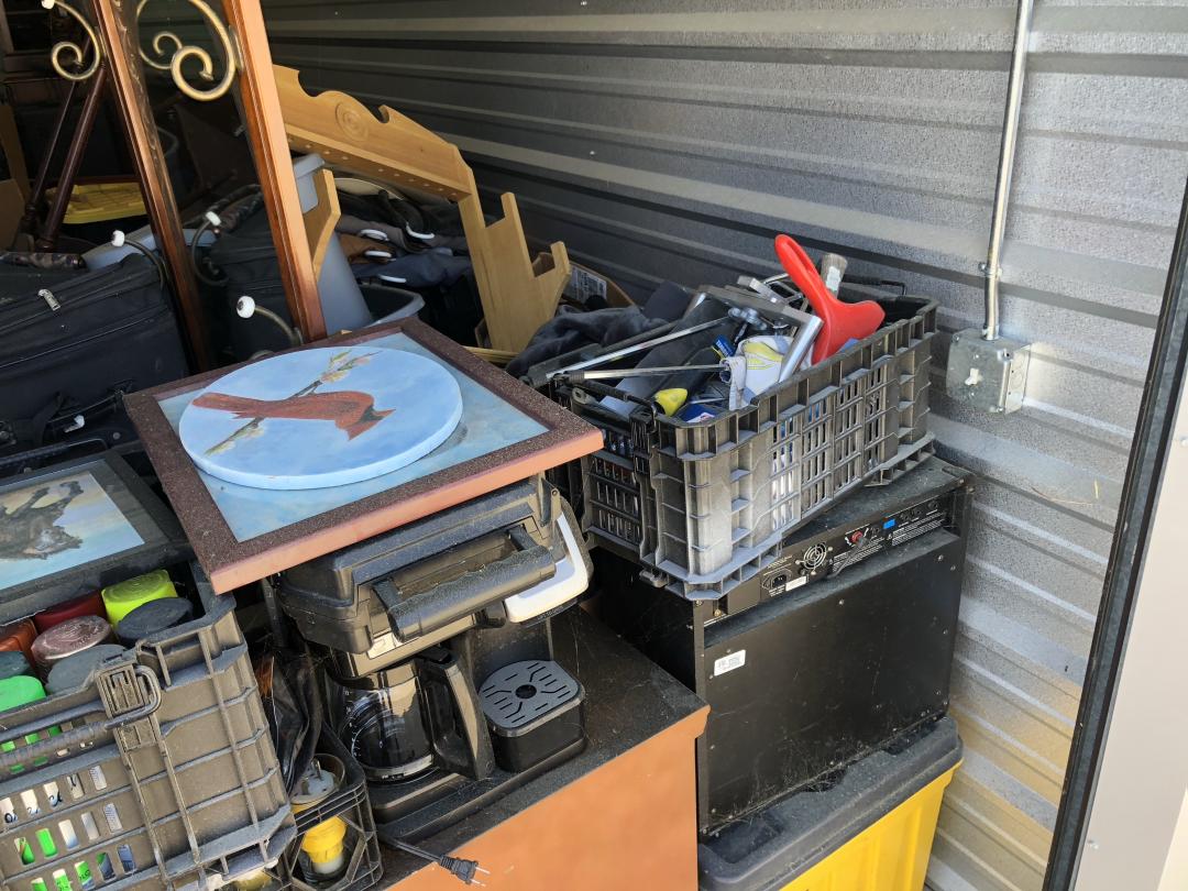 This unit appears to contain…Totes, Tool boxes, compressor, dressers, pictures, guitar amp, side tables, mattresses, coffee maker, luggage, shoes etc.