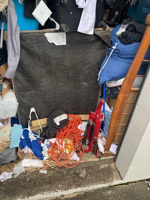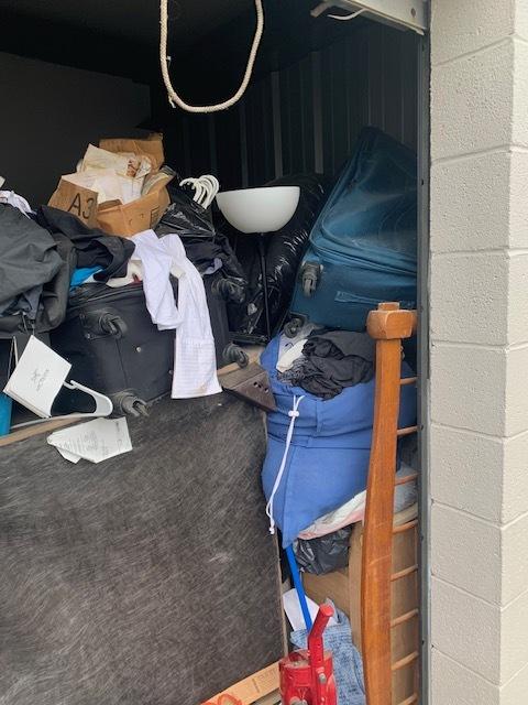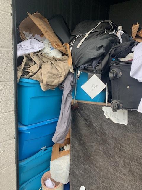 This unit appears to contain…furniture, tubs, boxes, bags, miscellaneous household items.