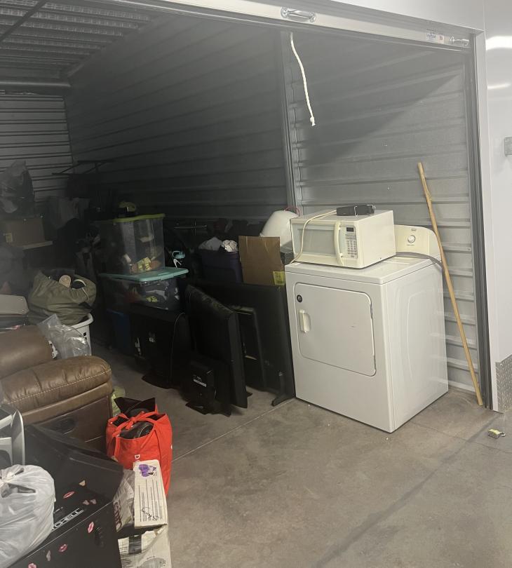 This unit appears to contain…totes, chairs, mattresses, appliances