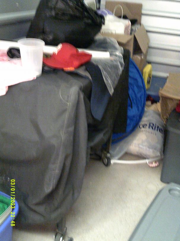This unit appears to contain…READ ALL AUCTION RULES BEFORE BIDDING!!! Unit appears to contain: Cooler, totes, boxes, fishing poles