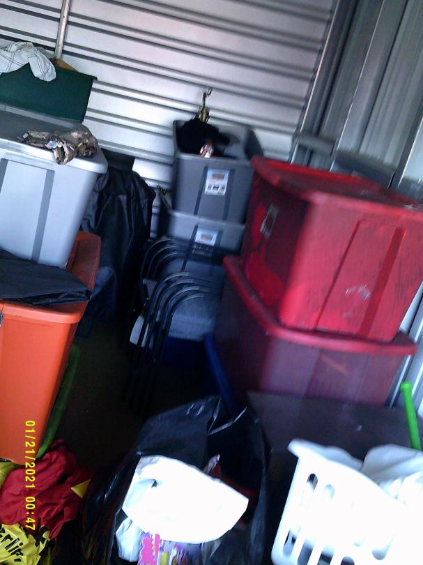 This unit appears to contain…READ ALL AUCTION RULES BEFORE BIDDING!!! Unit appears to contain: Table, chairs, totes, bags, boxes, patio set, clothing, shoes, art, decor, drum set