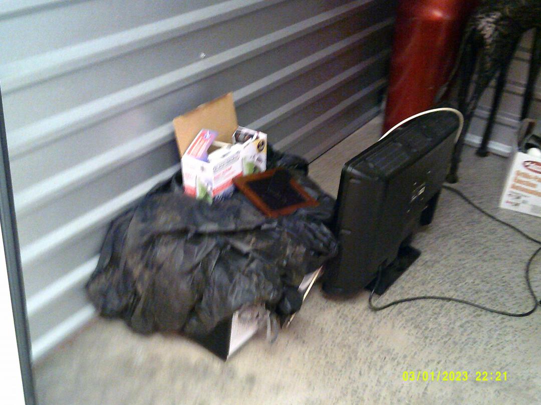 This unit appears to contain…READ ALL AUCTION RULES BEFORE BIDDING!!! Unit appears to contain: TV, sleeping bag, art, decorations, giraffe figure, boxes