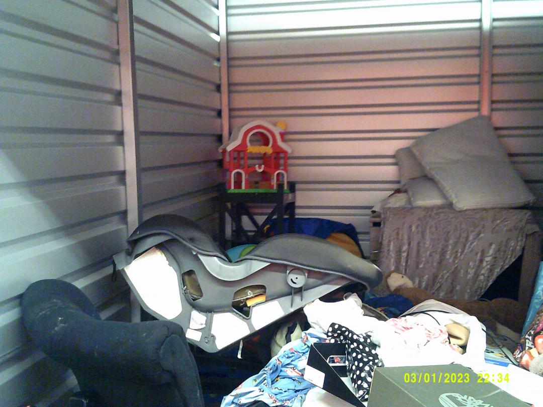 This unit appears to contain…READ ALL AUCTION RULES BEFORE BIDDING!!! Unit appears to contain: clothes, couches, totes, tv stand, tv, car seat, toys, crib mattress