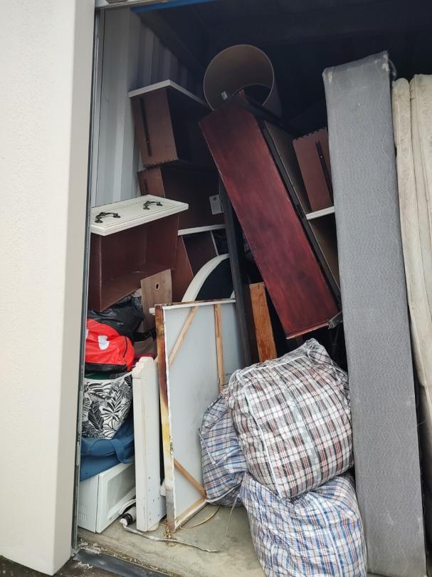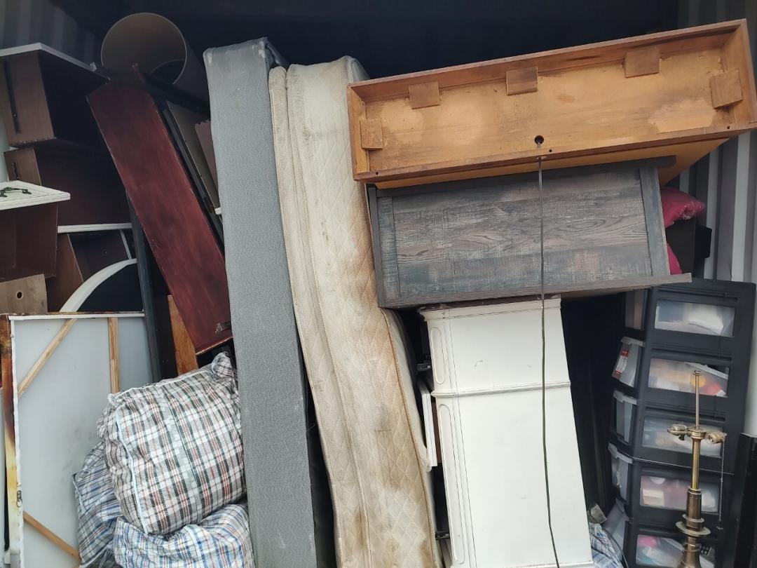 This unit appears to contain…This unit appears to contain: microwave, mattress, box spring, dresser, lamps, plastic bags, plastic containers, miscellaneous items