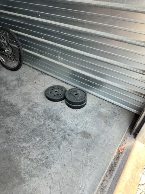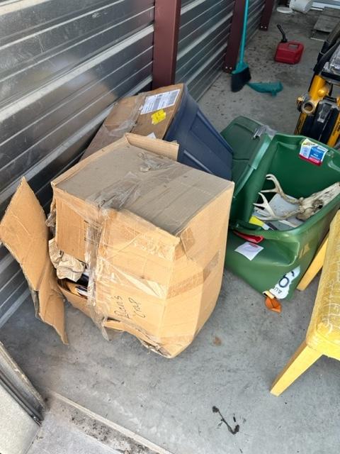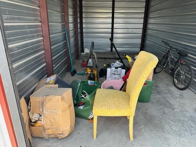 This unit appears to contain…ADULT BIKE, WEIGHTS, VACUUM, BINS AND DECOR