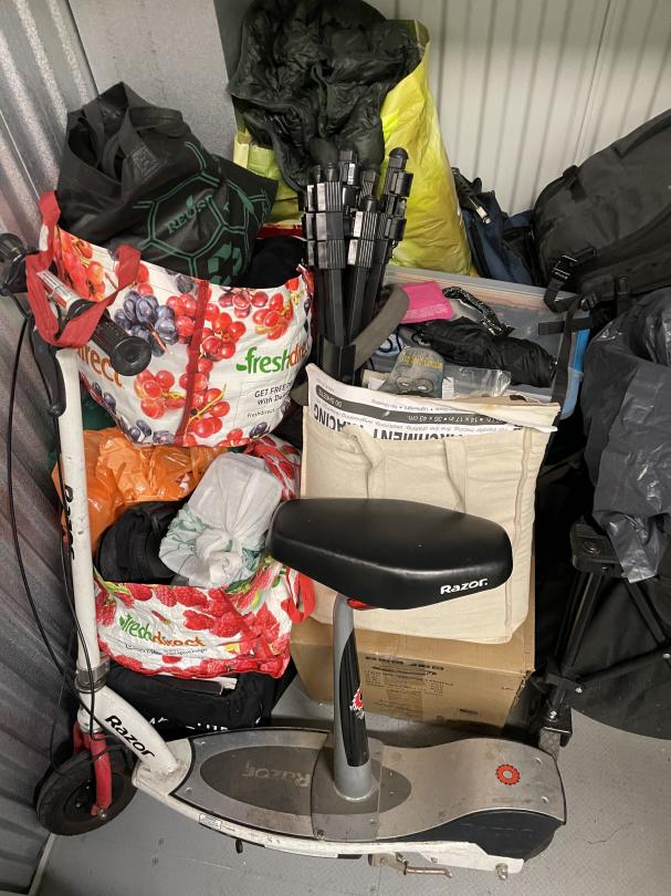This unit appears to contain…Bags Bins Boxes Shoes Scooter