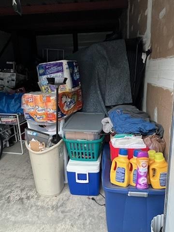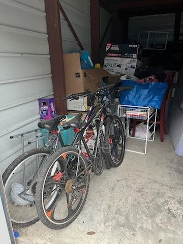This unit appears to contain…Bikes, Cooler, Cleaning Supplies, Household Supplies, Baskets