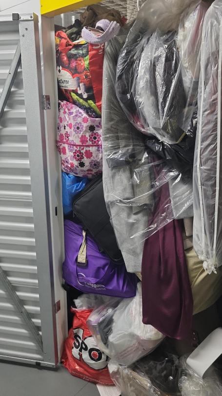 This unit appears to contain…Bags, clothes, Suitcases, Totes.