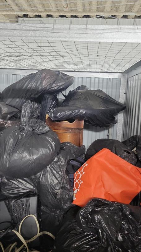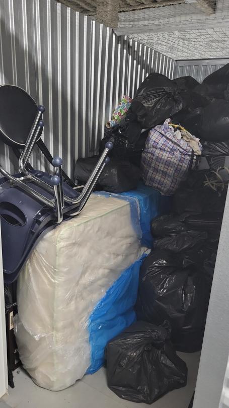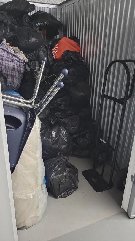 This unit appears to contain…Bags, Chairs, Dresser, Mattress ,TV. Dolly, Bed Frame Gym Equipment AV Wires