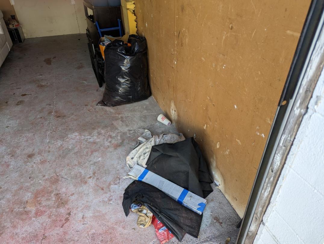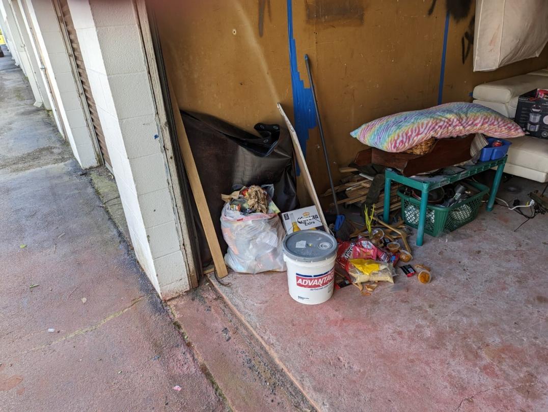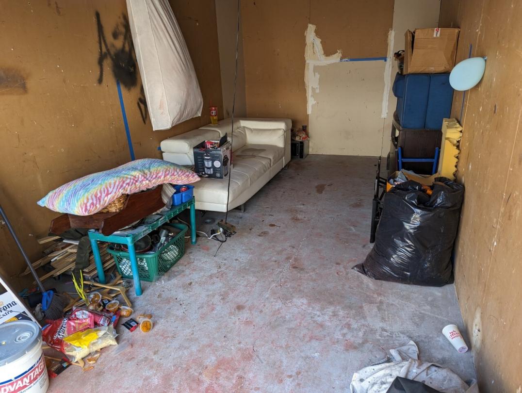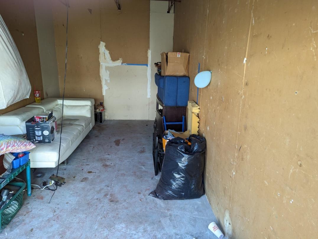 This unit appears to contain…Microwave,Couches,Dressers or Armoire,Plastic Bags,Plastic Containers