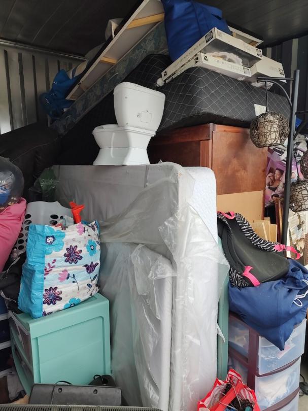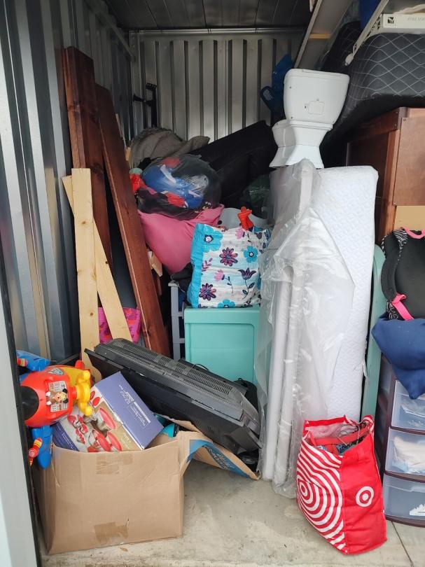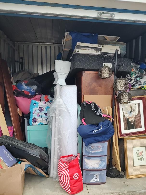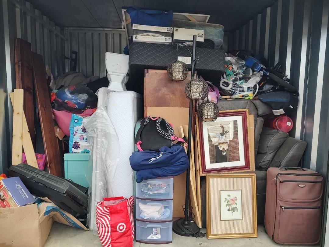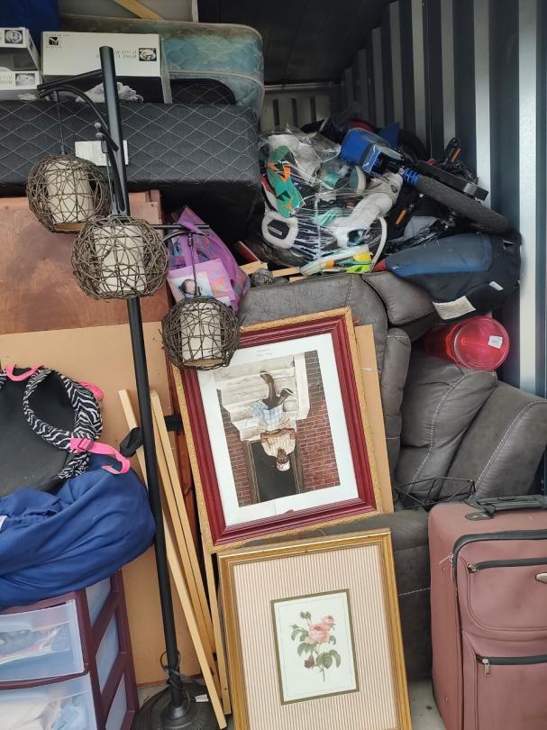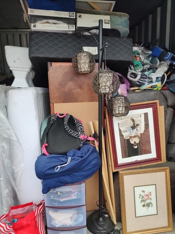 This unit appears to contain…THIS UNIT APPEARS TO CONTAIN: TV,COUCHES,MATTRESSES, BOX SPRING, BED FRAME,LAMPS,PLASTIC CONTAINERS, CLOTHING, MISCELLANEOUS ITEMS, SUITCASES,ARTWORK, TOYS,