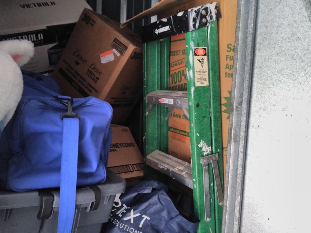 This unit appears to contain…Fenced & Gate, Indoor, Security Cameras Ladder, comforters, record player, storage bags and storage bins