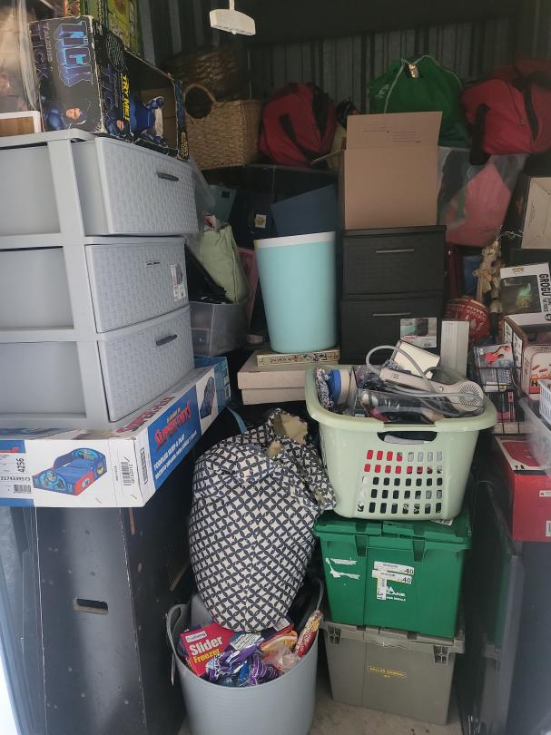 This unit appears to contain…5x10 unit containing action figure collectables, boxes, totes, furniture, and more.