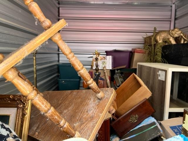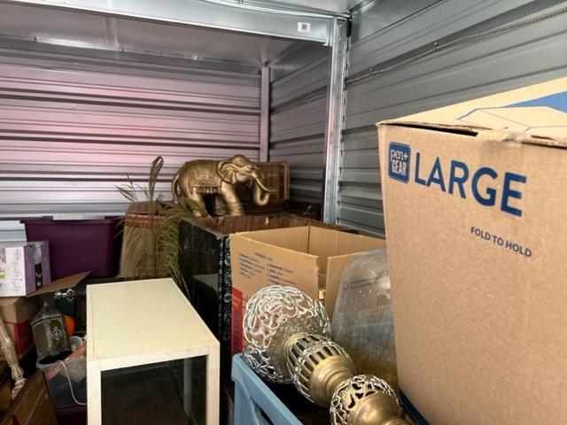 This unit appears to contain…Furniture, Sewing Machine, Mixer, Boxes, Totes, Lamps, Wall Art, Shelves. Misc Personal Items