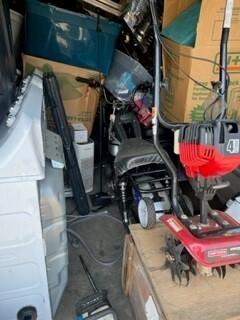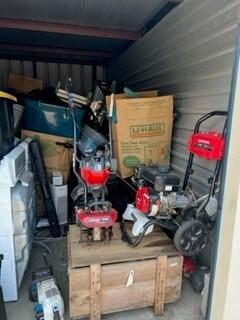 This unit appears to contain…TVs, commercial tools, washer and dryer, heater, ladder, totes, boxes, ect. bike not included in auction.