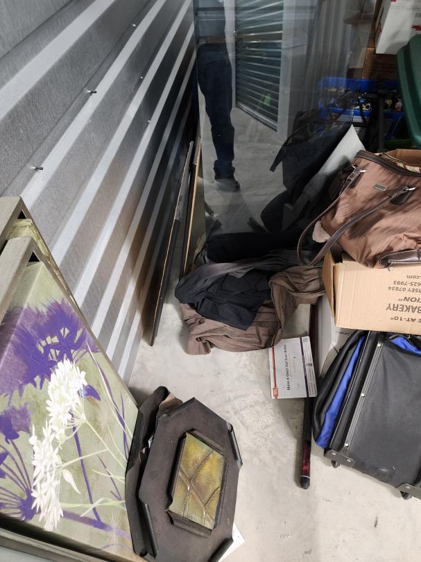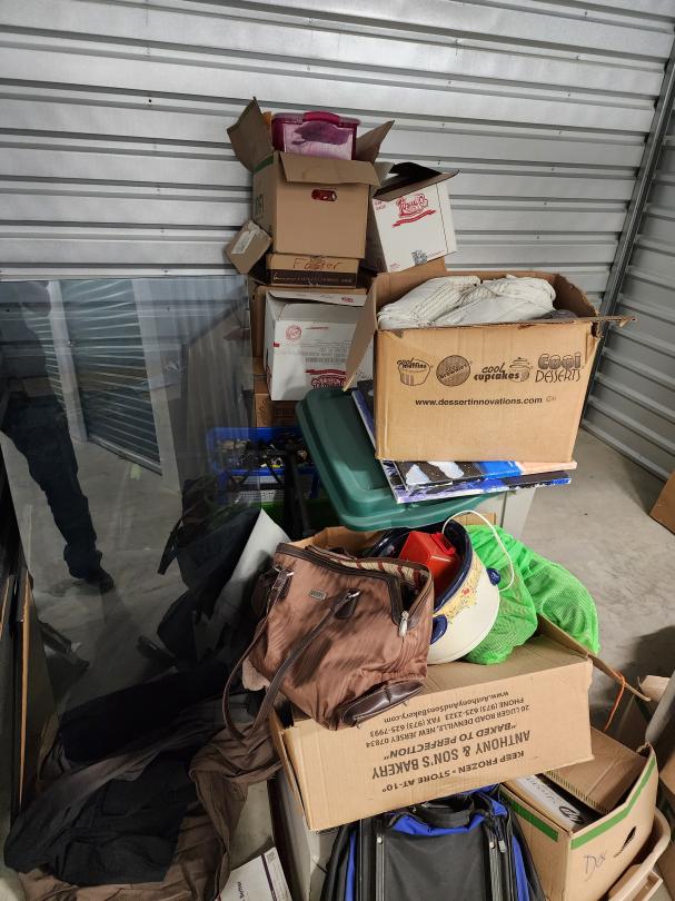 This unit appears to contain…3 matresses, mirror, entertainment stand, luggage, headboard, table, lamp, air fryer, toaster oven, couch, dresser drawers, 2 fishing poles
