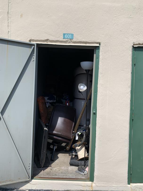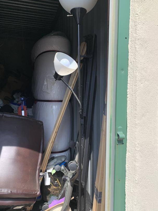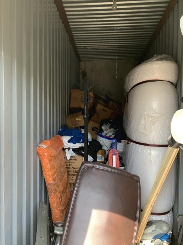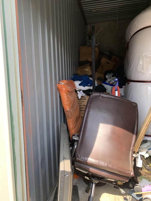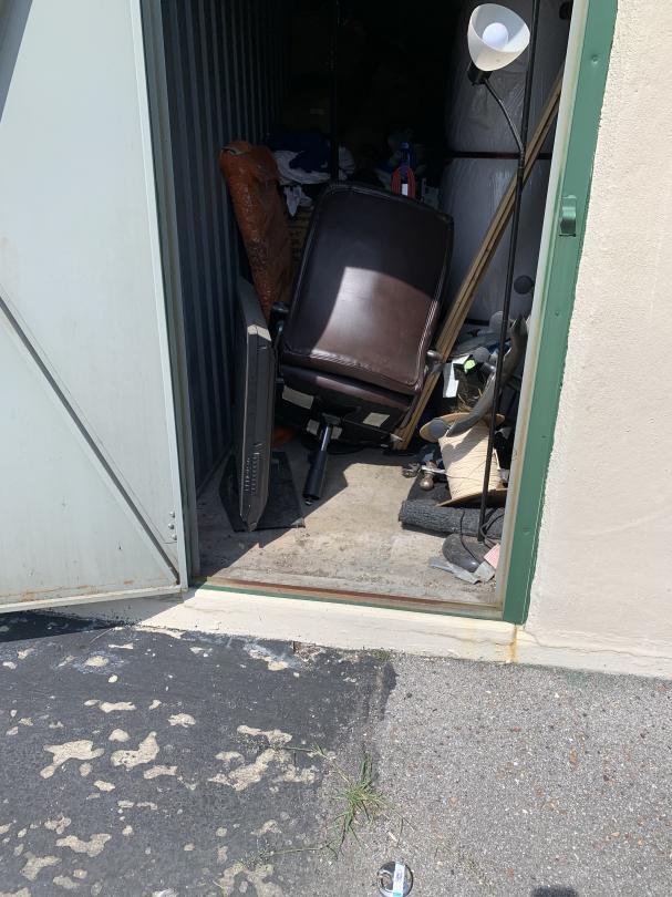 This unit appears to contain…flat screen tv, chair, mattress, boxes, lamp, bed rails, vacuum