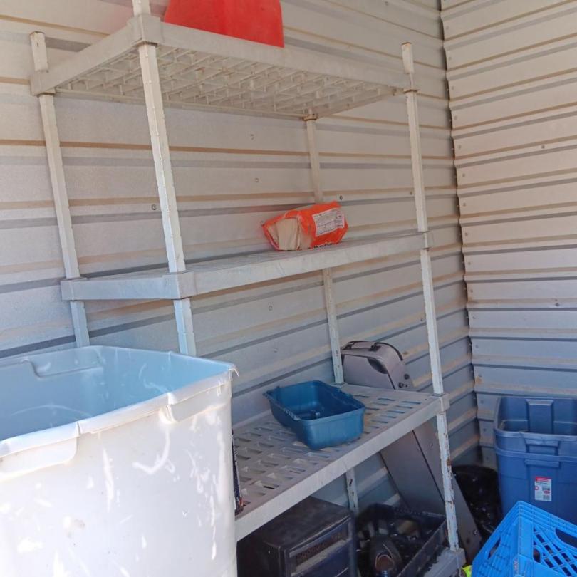 This unit appears to contain…Shelves, desk, and other misc household items