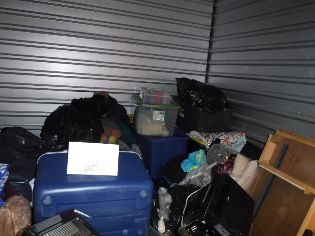 This unit appears to contain…clothing bags boxes home goods bike