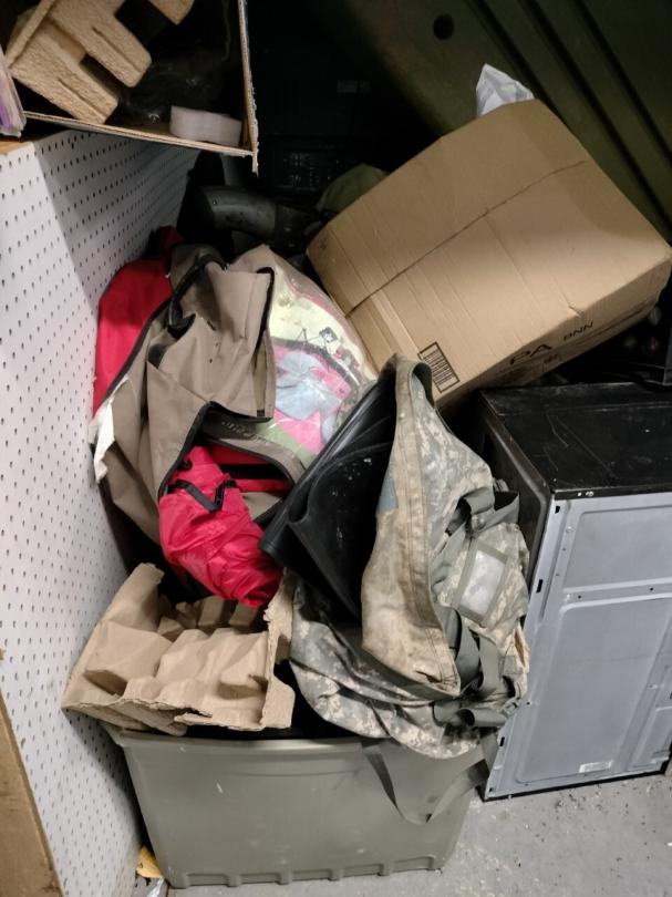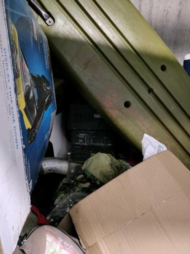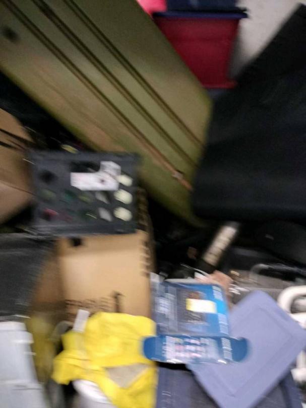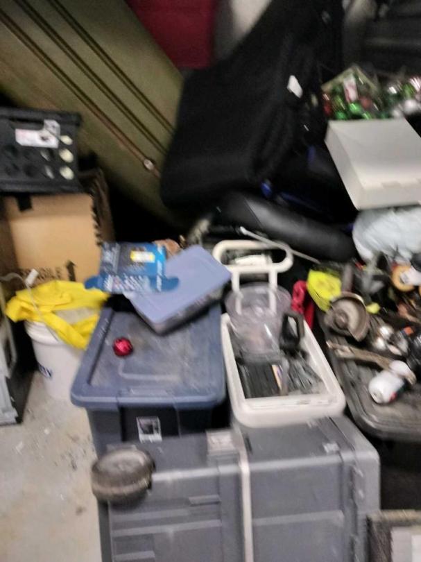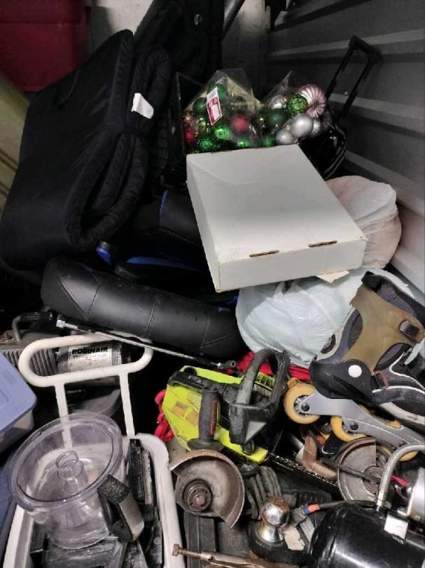 This unit appears to contain… Tool Box,Auto Parts,Tools,Microwave,HVAC Equip.,Plastic Containers,Misc. Items,Exercising Equip.,Coolers