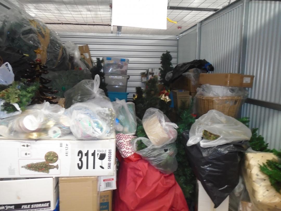 This unit appears to contain…totes, bags, christmas tree, christmas decorations