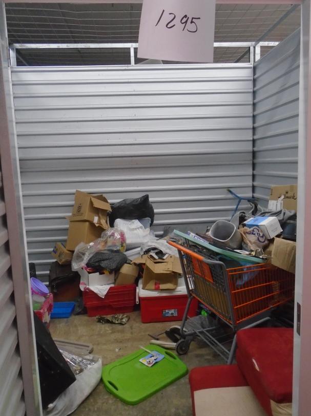 This unit appears to contain…bags, lawn mower, boxes, totes