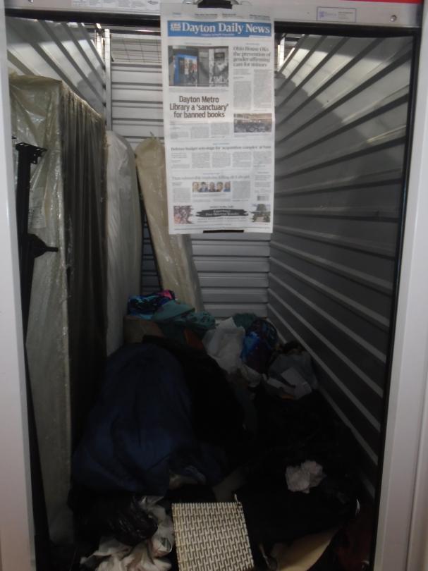 This unit appears to contain…mattress, clothes, bed frame