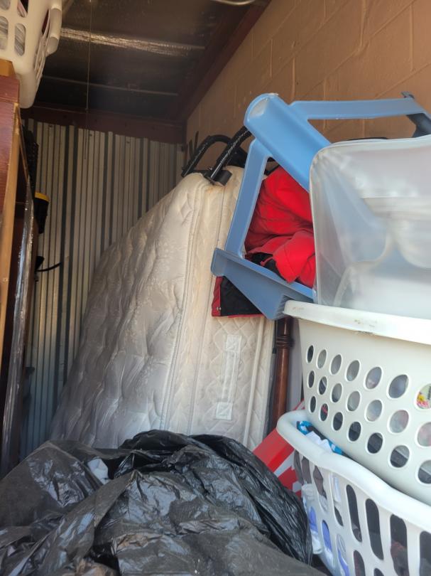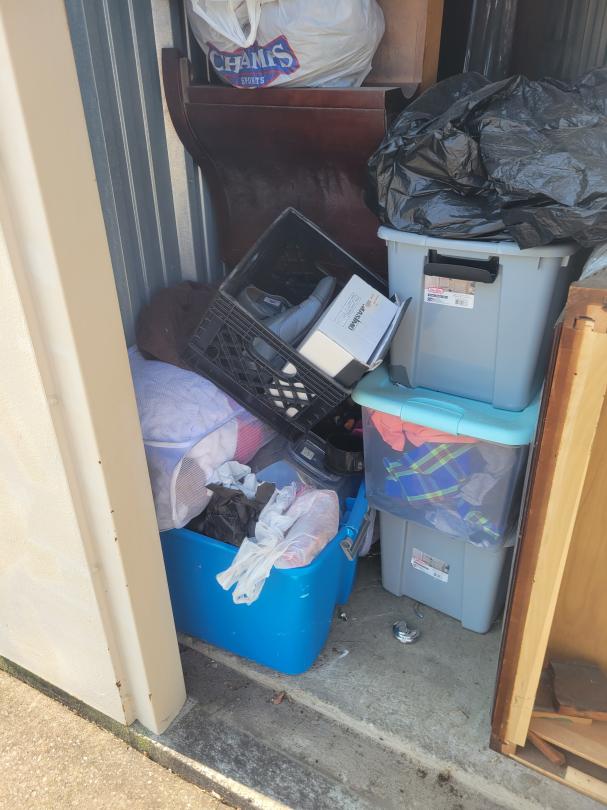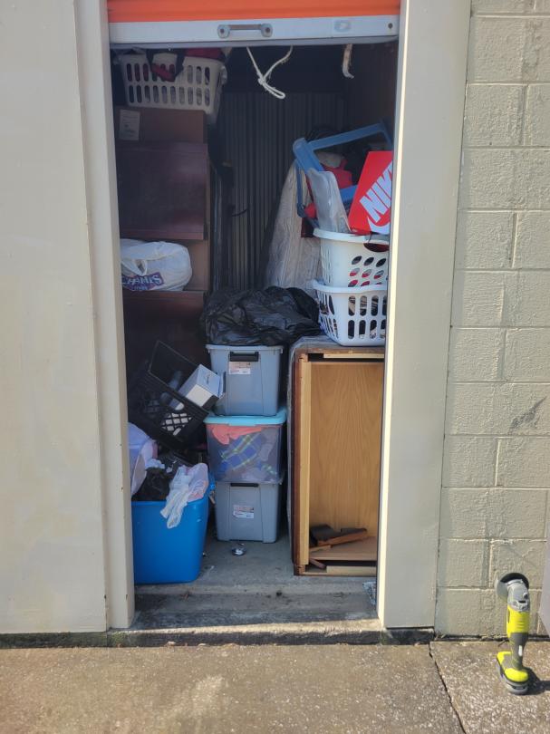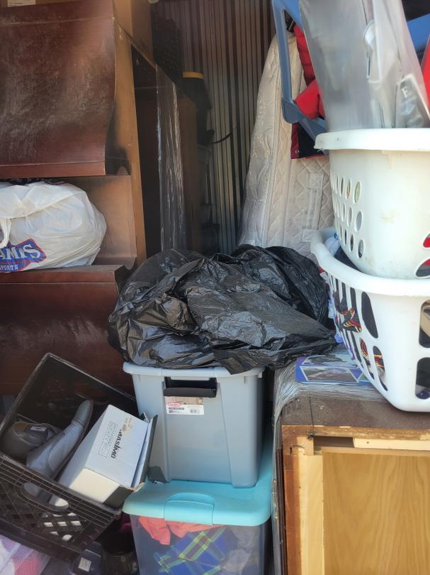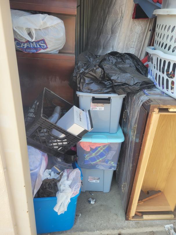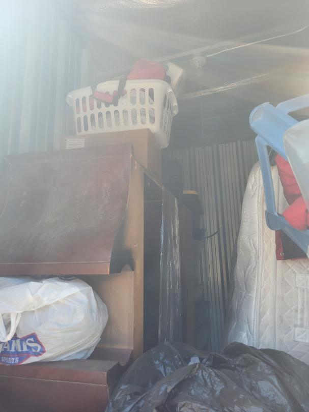This unit appears to contain…Mattresses,Box Springs,Bed Frame,Dressers or Armoire,Plastic Bags,Plastic Containers,Misc. Boxes,Clothing,Misc. Items,Exercising Equip.,Laundry Baskets