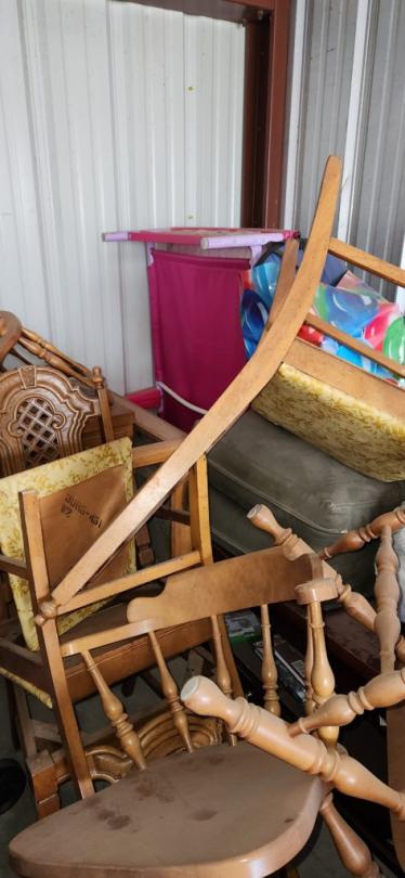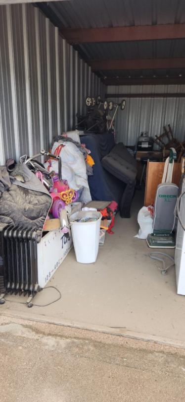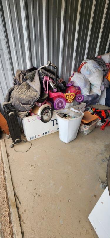 This unit appears to contain…appliances, cabinets and shelves, kitchenware, old stuff, toys, baby and games, clothing, books, furniture, boxes,
