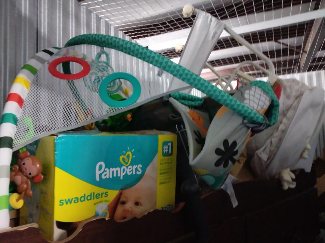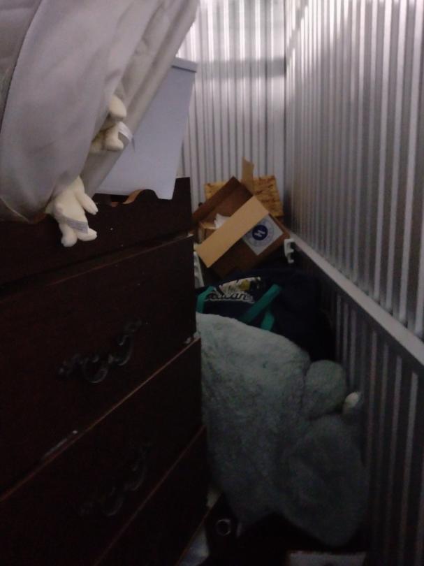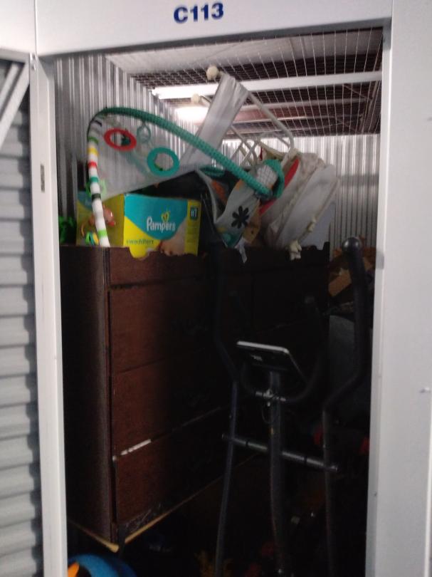 This unit appears to contain…unit appears to contain: bags, dresser, boxes, baby items, toys, exercise machine