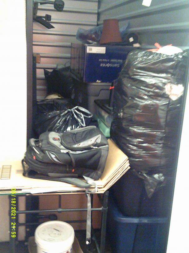 This unit appears to contain…READ ALL AUCTION RULES BEFORE BIDDING!!! Unit appears to contain: Box spring, mattress, bags, totes, world globe, computer monitors, small table, electronic keyboard