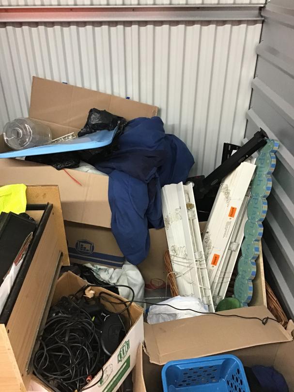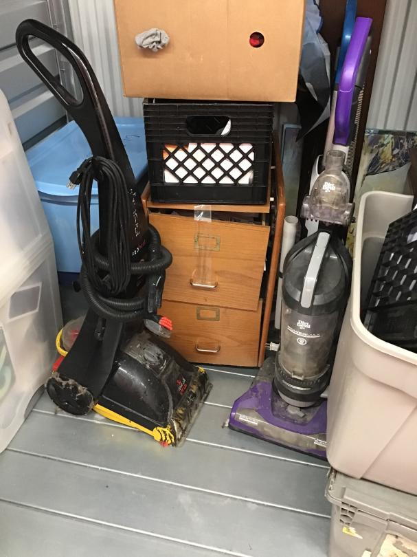 This unit appears to contain…5x10x8 Split Level 1st Floor Upper Level Climate, unit appears to have vacuums, totes, and boxes
