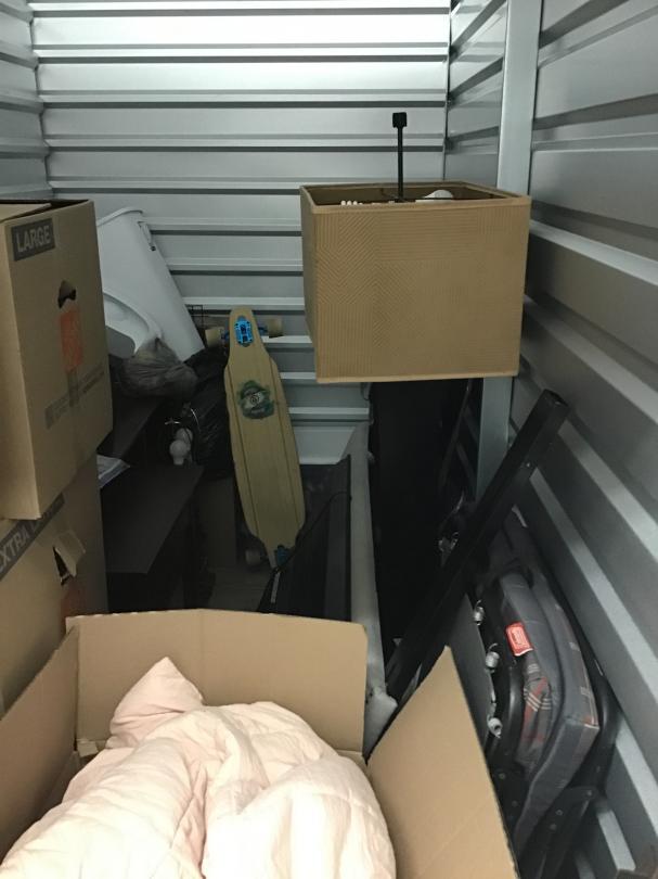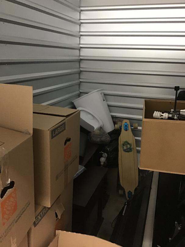 This unit appears to contain…5x10x8 Interior 1st Floor Street Level Climate, unit appears to have boxes, longboard, lamp, coffee table and other miscellaneous items