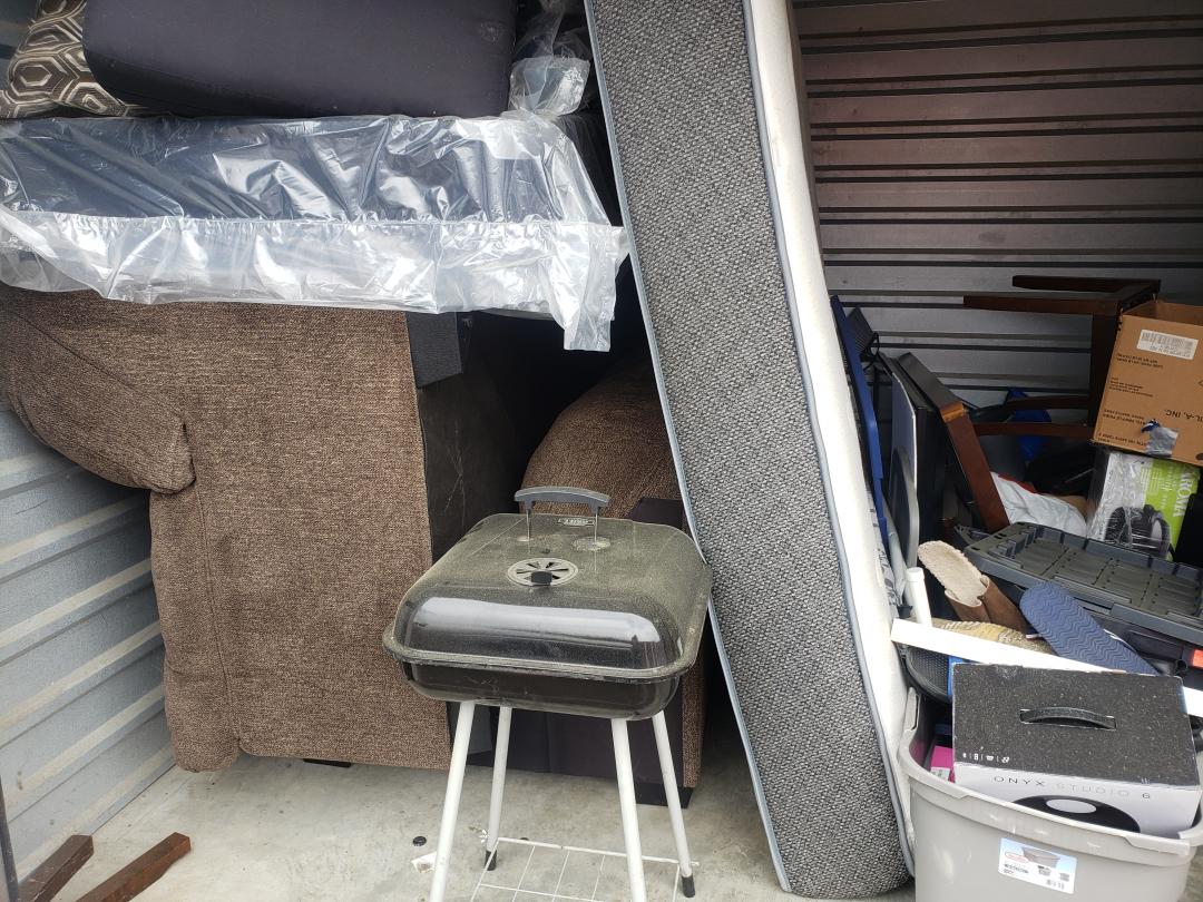 This unit appears to contain…bedroom suite, totes, grill, sectional couch, tv, and tables