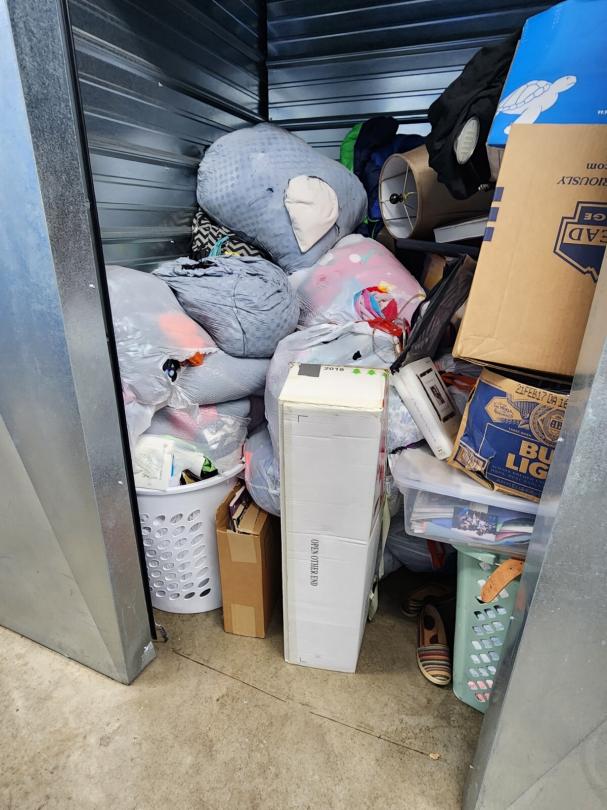 This unit appears to contain…Bags, boxes, laundry basket, lamp, backpack, books
