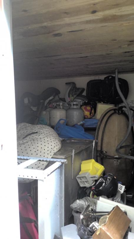This unit appears to contain…Furniture, pictures, car seats, shelves, baby items, toys, luggage, household items, propane tanks