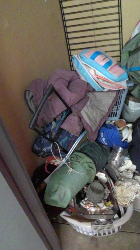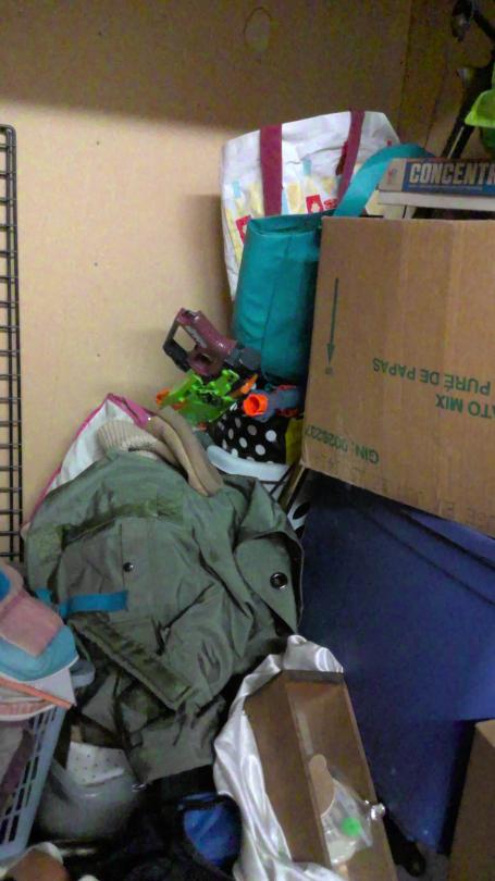 This unit appears to contain…Household items, clothing, shoes, bags, toys, backpack and tennis rackets