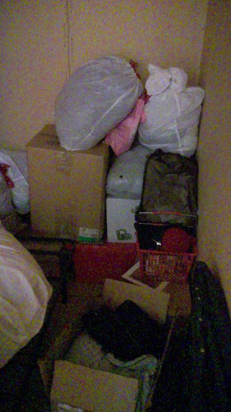 This unit appears to contain…Kid bed frame, chairs, bedding, blinds, household items, clothing, boxes, bags and totes